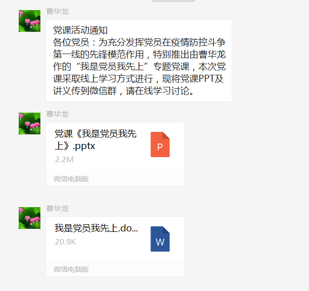 528日,沈河校区机关党支部书记曹华龙结合新冠肺炎疫情防控形势,以《我是党员我先上》为题为支部党员讲党课,此次党课采取线上讲解的方式进行。
