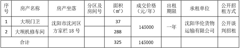 沈河校区管委会作为授权承办部门成立东北大学房产公开招租评审小组,根据截止日后的实际报名情况于2020年7月24日在沈河校区办公楼三楼会议室举行了东北大学房产公开招租会议,现将本次公开招租结果公示如下: