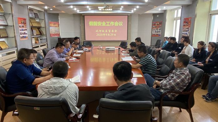 929日,沈河校区管委会召开了2020年国庆中秋假前安全会议,办公楼全体关工作人员和后勤保障服务中心班组长参加了会议,会议由沈河校区管委会副主任周军主持。