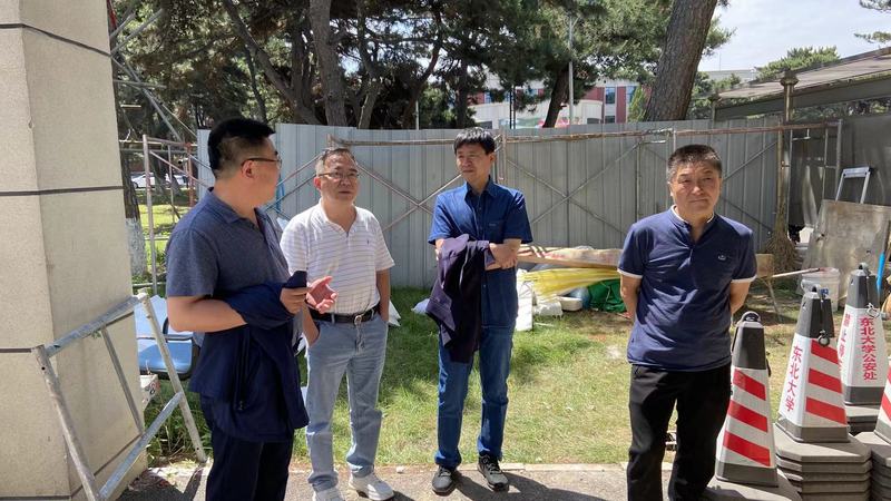 本次安全检查的重点部位是沈河校区北门门卫房和门市房改造施工现场,检查组发现,施工现场有部分施工人员未佩戴安全帽,部分区域没有设置警戒线。