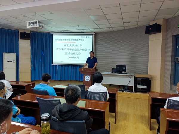 6月10日上午,沈河校区管委会后勤保障服务中心在教学主楼东阶一教室召开了贯彻落实东北大学2021年“安全生产月”和“安全生产校园行”活动动员大会。后勤保障服务中心全体职工参加了会议,会议由沈河校区管委会后勤保障服务中心主任肖辰厚主持。