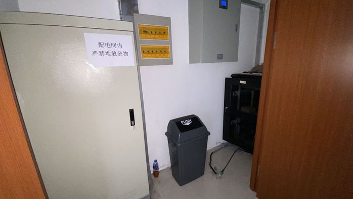 本次检查发现教学讲堂配电室内存放杂物,施工人员临时宿舍存在人走不断电、私自串联插排、灶具距离配电箱过近等安全隐患。