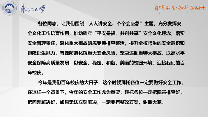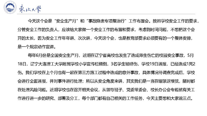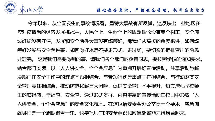 张皓校长在2023年“安全生产月”和“事故隐患专项整治行”工作布置会讲话