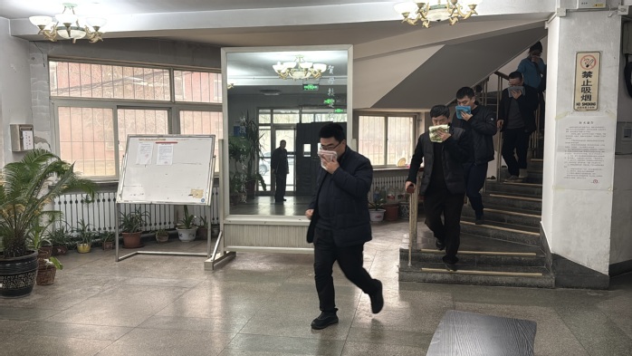 会后,管委会组织参会人员在办公楼进行了消防逃生演练。